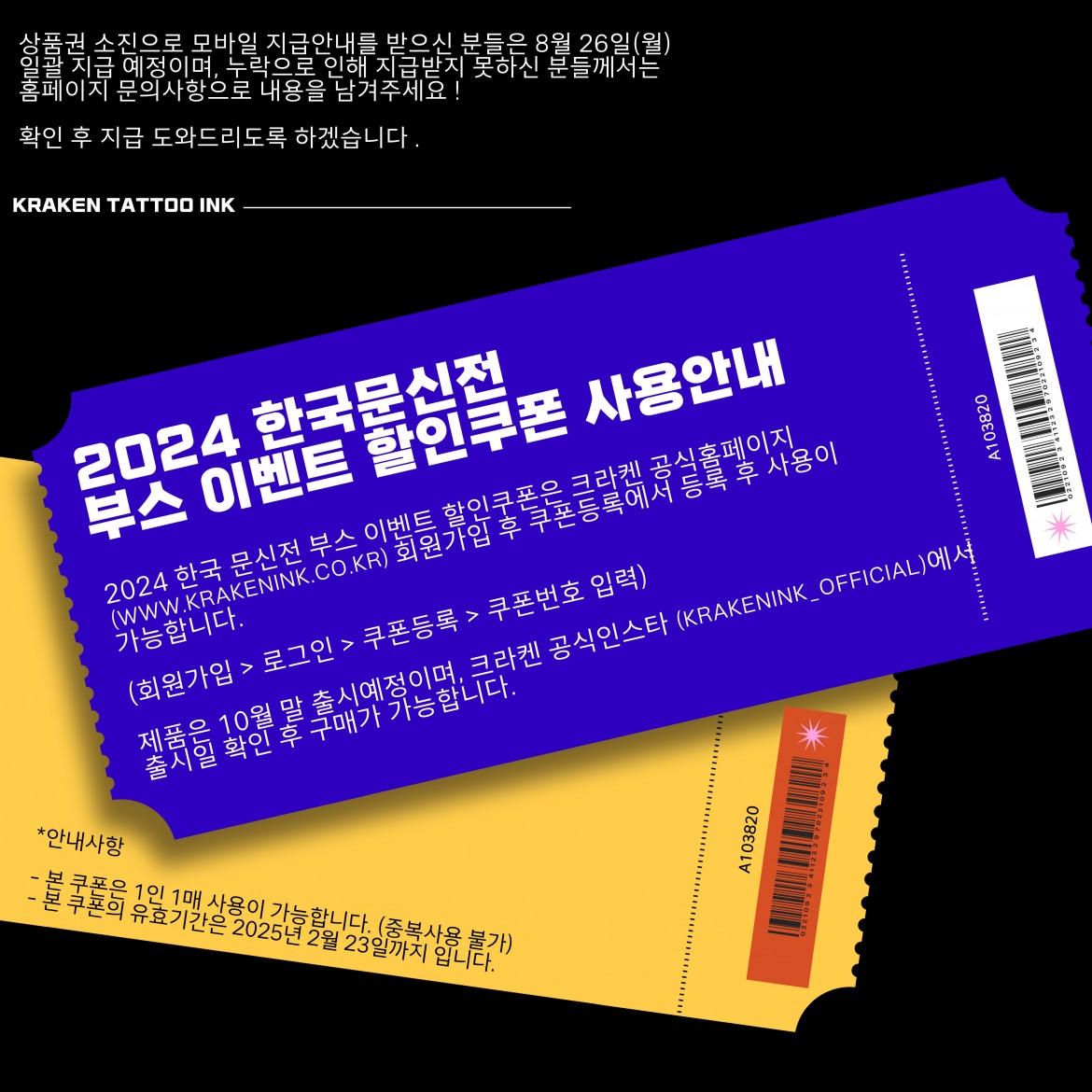 2024 한국 문신전 부스 이벤트 할인쿠폰 사용관련하여 안내드립니다.